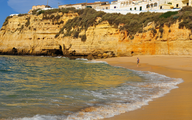Située dans la ville de Carvoeiro, dans l’Algarve, Praia do Carvoeiro est une petite plage de sable blanc bordée de falaises de calcaire rouge. La plage est entourée de restaurants et de bars, ainsi que de maisons de pêcheurs pittoresques. La plage elle-même est assez petite, mais elle est entourée d’eau cristalline et de formations rocheuses spectaculaires. Les visiteurs peuvent explorer les grottes et les tunnels marins environnants en kayak ou en bateau. La plage est également un endroit populaire pour la plongée en apnée et la plongée sous-marine.
